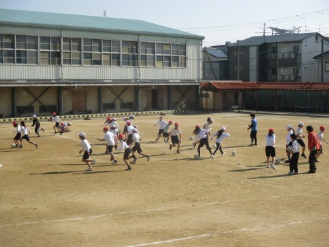 5年生は体育で,ラインサッカーの学習をします。
