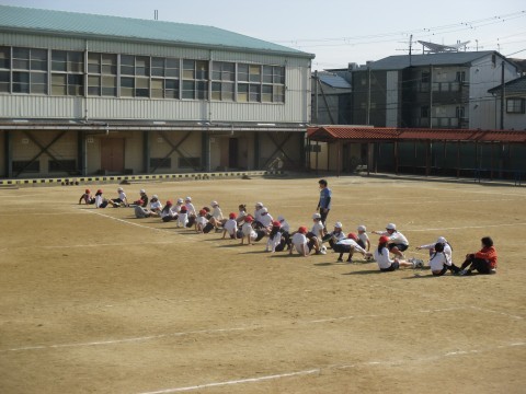 今日は運動場で実際に体を動かしてみたり,