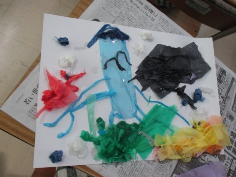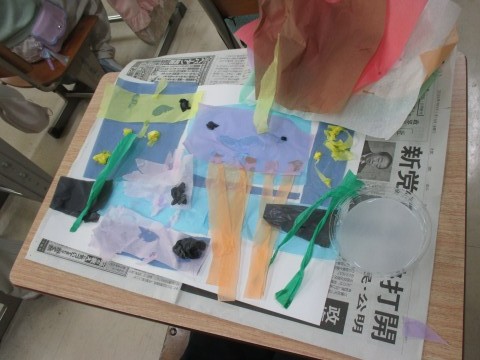 1年生が図工で「ふわっと ぎゅっと おはながみのえ」