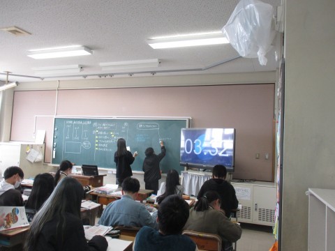 話し合ったことをノートや黒板に書き出していました。