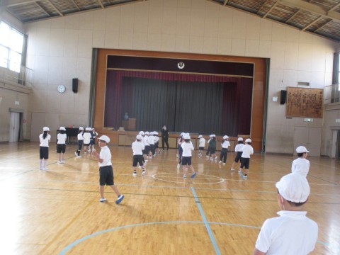 1年生が体育館で体育をしていました。