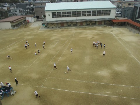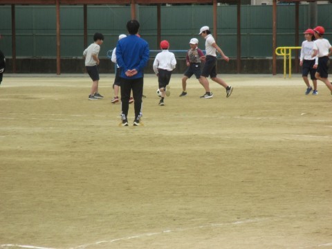 5年生は体育でラインサッカーをしています。