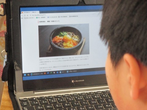 タブレットを使って世界各地の料理を調べ