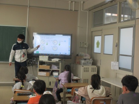 1年生が「なんじ なんじはん」の学習をしていました。