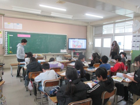 今日の外国語活動は,担任の先生とNS(ネイティブスピーカー)の先生の授業でした。