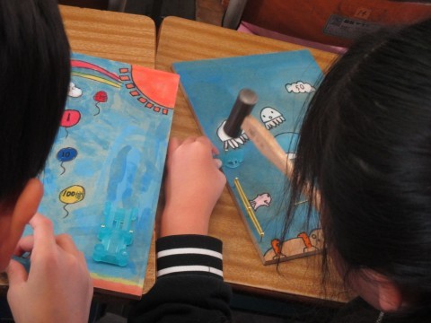 3年生の「トントンくぎ打ち コンコンビー玉」