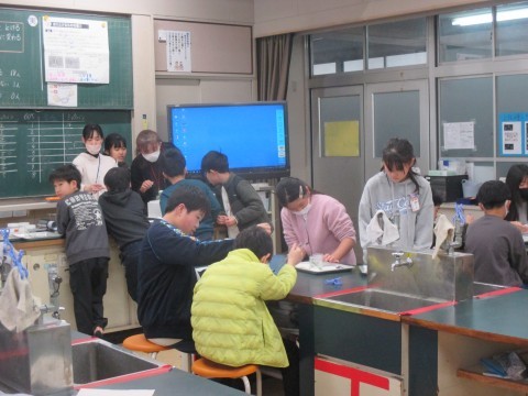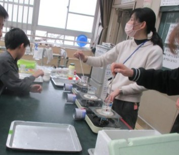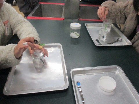 安全に気をつけて,協力して実験をしていました。