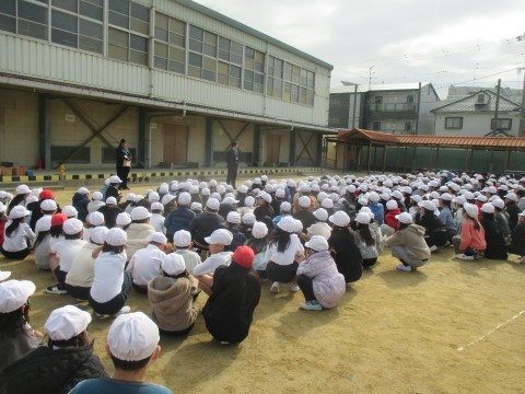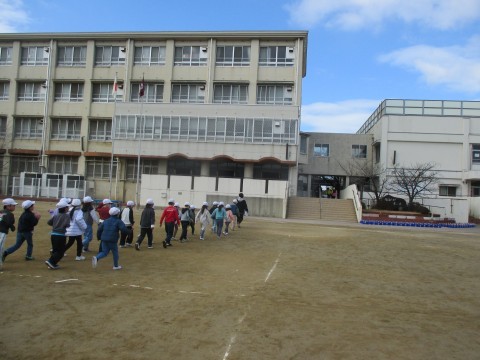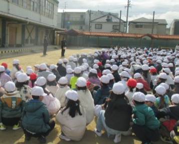 今日は,休み時間に地震と火災が起きた時の訓練です。