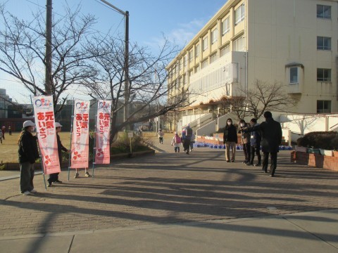 終わったあとは集まって,今日のあいさつ運動のふり返りをしていました。