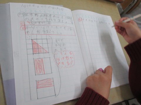 分数で表すにはどうすればいいか,図をかいて考えていました。