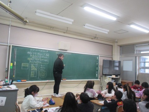 2年生は算数で,「分けた大きさのあらわし方をしらべよう」の学習をしています。