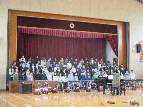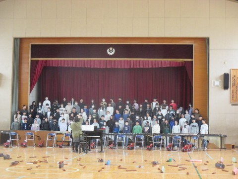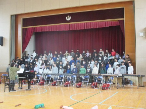 体育館で合唱と合奏の練習をしていました。