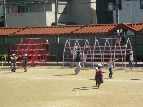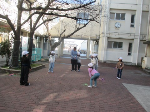 なわとびや鬼ごっこで一緒に遊んでいる先生もいました。