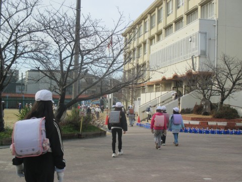今朝も1年生はチューリップの水やりに来ていました。