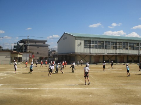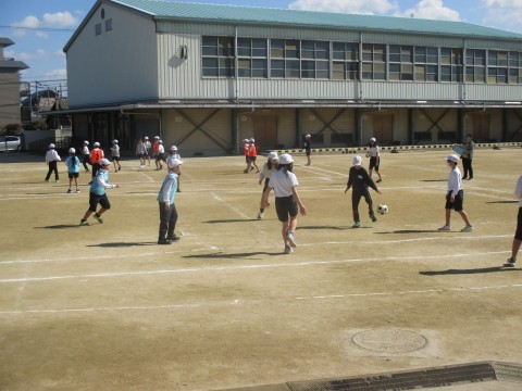 4年生が体育でサッカーをしていました。