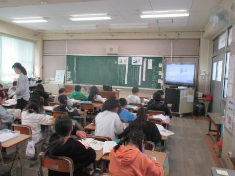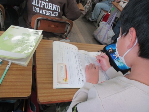 3年生が道徳の時間に,「ありがとうの気持ちをこめて」というお話を読んで,