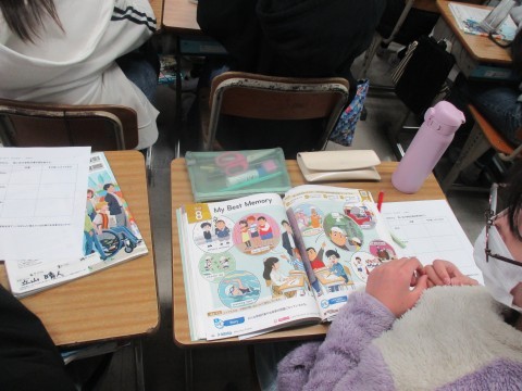 6年生は外国語の時間に My  Best  Memory  の学習をしていました。