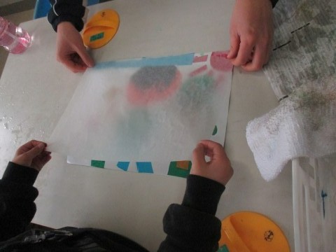 1年生が取り組んでいるカラー紙版画。