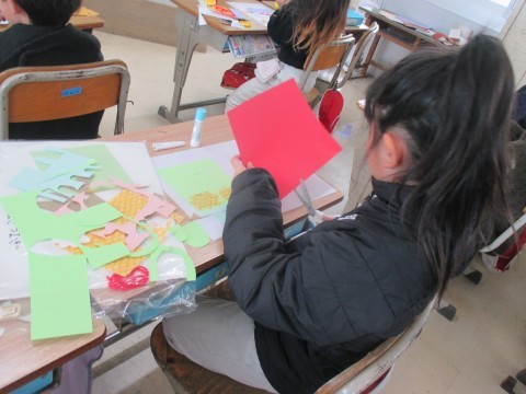 2年生が図工で取り組んでいる「プチプチかみはんが」