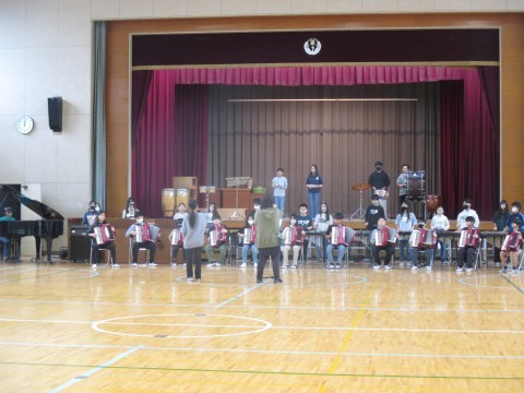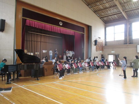 体育館でクラス合奏の練習をしているクラスがありました。