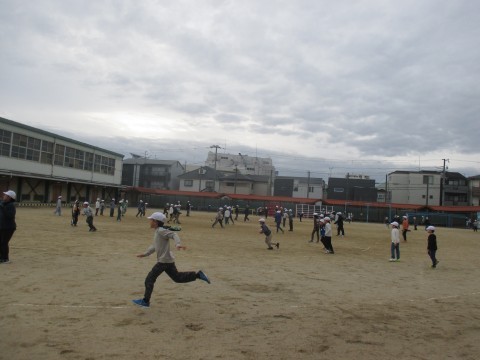運動場では今日も子どもたちが