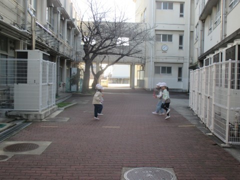 中庭では,1年生の子どもたちがなわとびの練習をしていました。