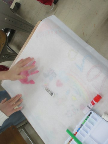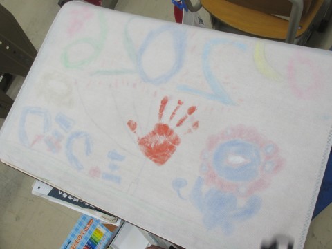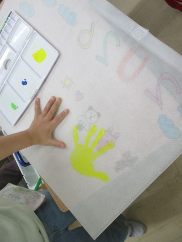 好きな絵を描いたり,手形を押したり。