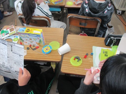 豆電球と磁石の実験キットを使って