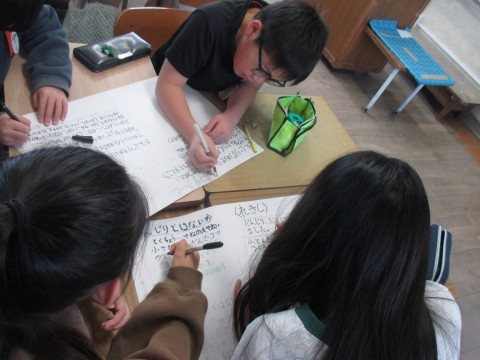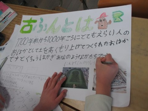 発表することを画用紙にまとめていました。
