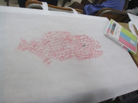 2年生が図工の時間に,作品バッグに絵を描いていました。