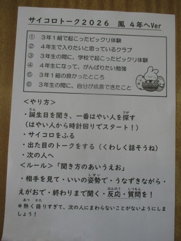 3年生の思い出や,4年生で頑張りたいことなどを話して