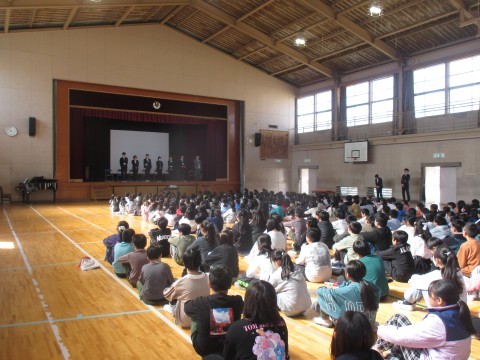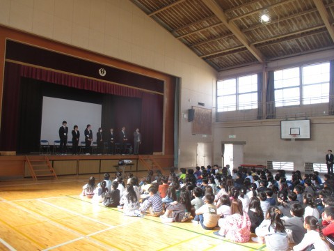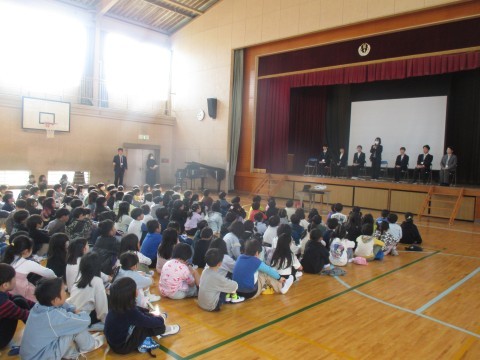 校長先生から新しく鳳小学校に赴任してこられた先生方の紹介があり,