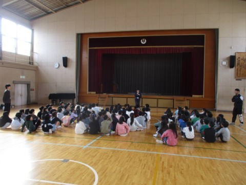 学年目標についてのお話や体と心の安全・安心を守るためのお話など全員が真剣に集会に参加していました。
