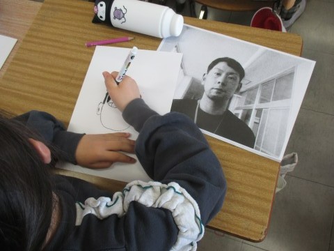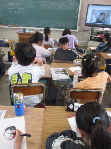 4年生が図工の時間に,サインペンを使って