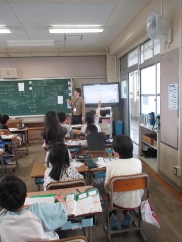 ノートに自分の考えを書き,発表していました。