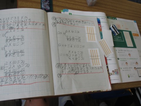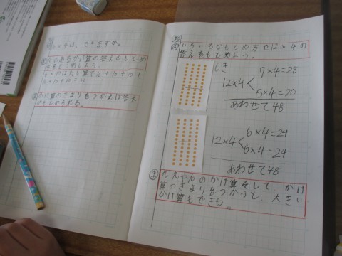 3年生が算数の時間に,「いろいろな求め方で,12×4の答えを求めましょう」