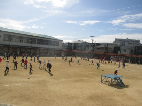 今朝は子どもたちが元気に走り回っていました。