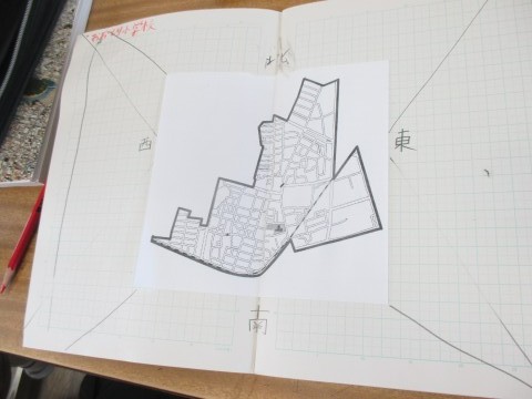 方位磁針を使って,鳳小学校を中心に東西南北を確認しました。