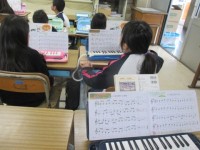 2年生が町たんけんで発見したことを壁新聞にまとめています。