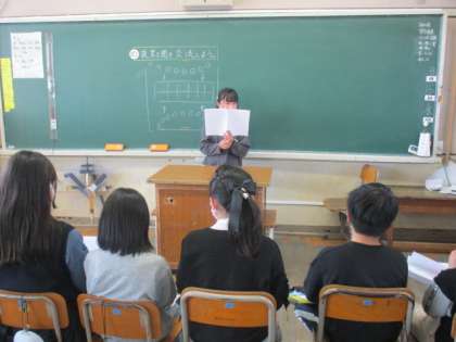 5年生の総合的な学習の時間もまとめの活動です。1年間考え、実践してきたことをもとに提案文にまとめ、それを伝える活動です。根拠を明確に、説得力のある提案がたくさんありました。1組のようすです。