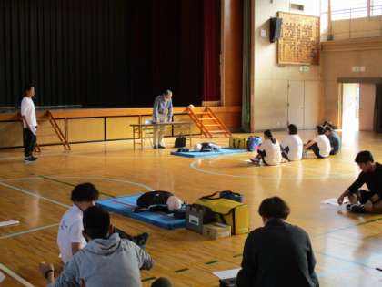 胸骨圧迫やAEDの使い方などを実際に練習しました。