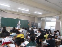 学習のめあては「ヘチマの花粉を観察しよう」です。顕微鏡を使って、ヘチマの花粉を観察しています。光があたるように反射鏡を調節しながら、いろいろな倍率で花粉を観察していました。