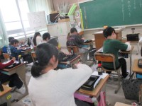「おおきくなってきたわたし」というテーマで学習しています。入学してから今までの身長のデータをもとに、気がついたことや考えたことを話し合っています。