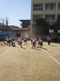 2年生は体育で、サークルシュートゲームに取り組みます。今日は、ゲームに向けてボー...