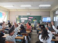 堺市博物館からゲストティーチャーに来ていただき体育館で,昔の暮らしについて出前授...