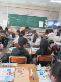 3年生が外国語活動の時間に英語で好きなものをやり取りする言い方を学習していました...