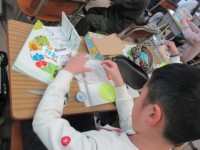 3年生が取り組んでいる「トントンくぎ打ち コンコンビー玉」今日は下絵に色をつけて...