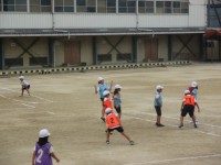 4年生が体育でラインポートボールをしていました。今日はチームごとに自分たちでスケ...