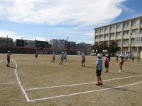4年生が体育でラインポートボールをしていました。今日はチームごとに自分たちでスケ...