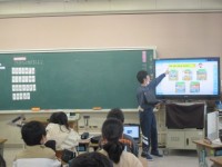 4年生が外国語活動で,アルファベットクイズをしていました。ペアになって,タブレッ...